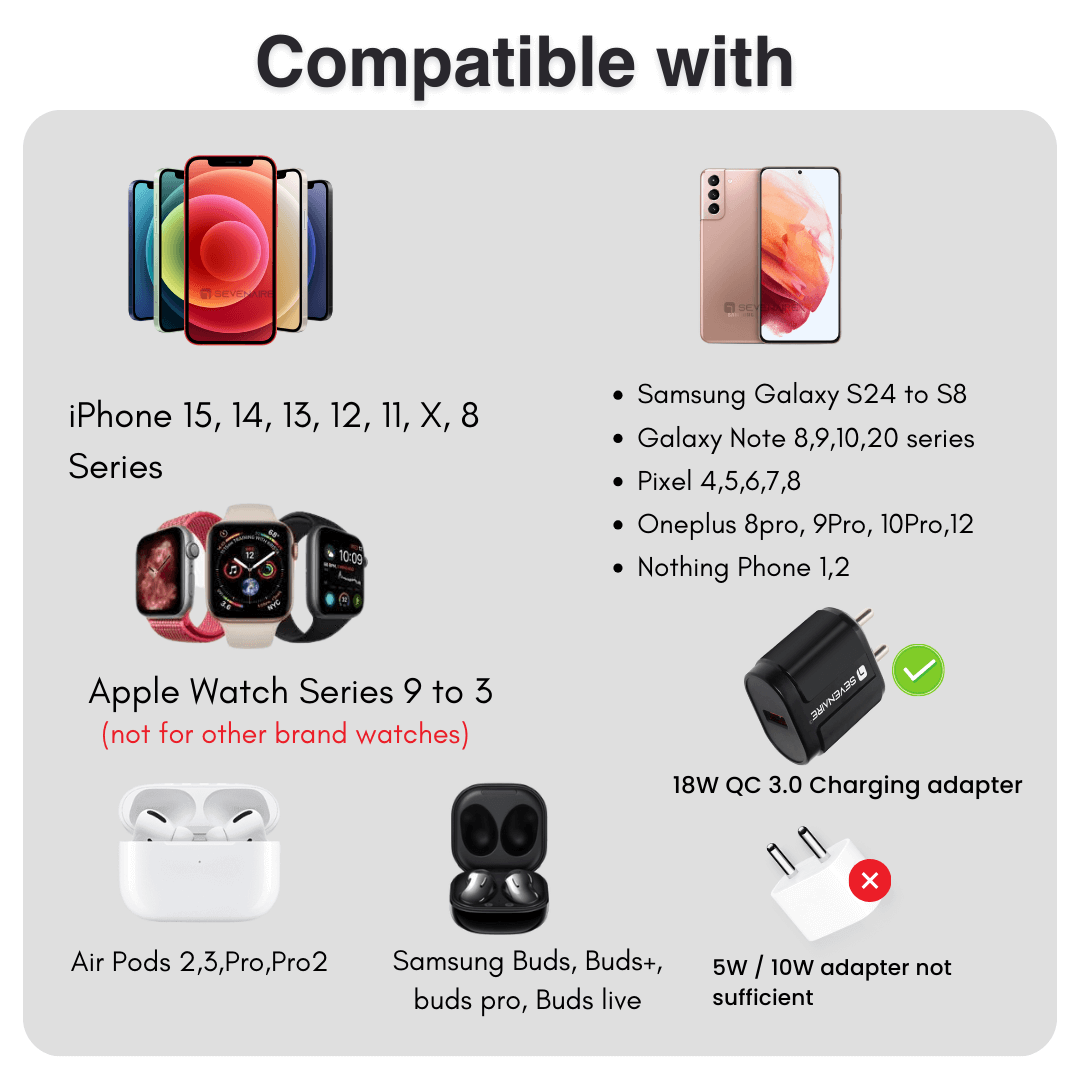 Ensure Qi Certified Fast and Safe Wireless Charging with Sevenaire D1970 3 in 1 Wireless Charging Dock.