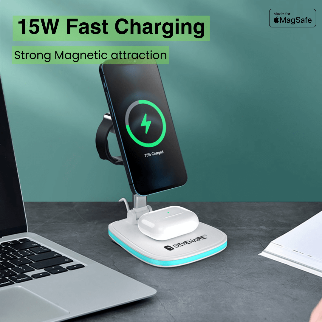 Fast Charging for 3 devices at once on the Sevenaire MagCharge 3-in-1 Wireless Charger D1850.