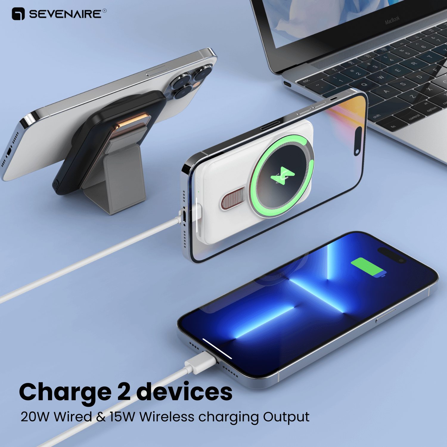 Ensure Qi Certified Fast and Safe Wireless Charging with Sevenaire MagCharge P50 Magsafe powerbank.