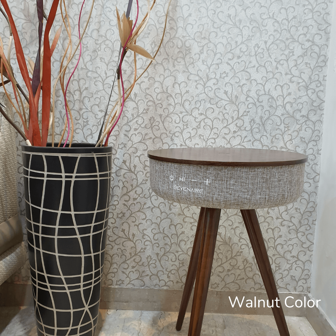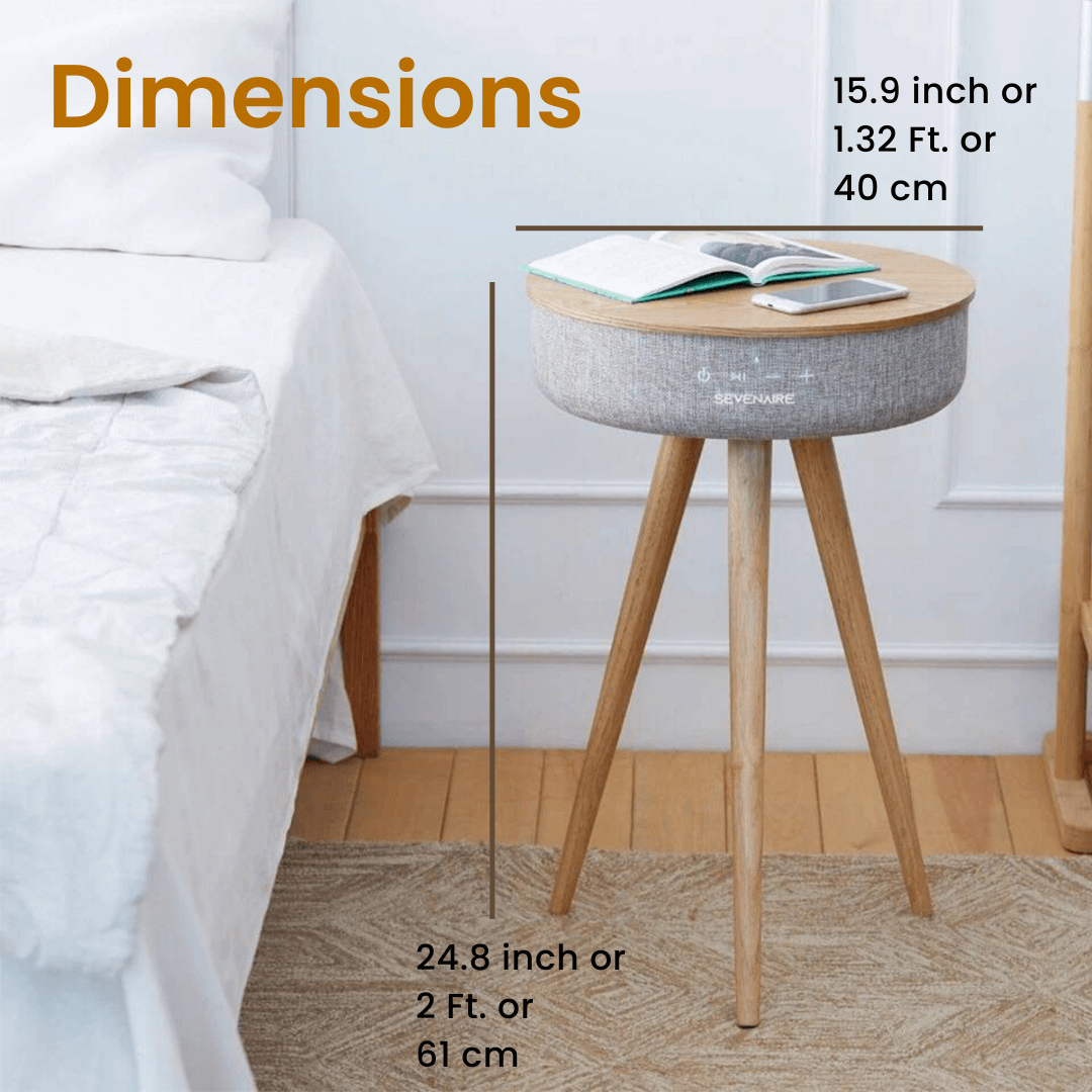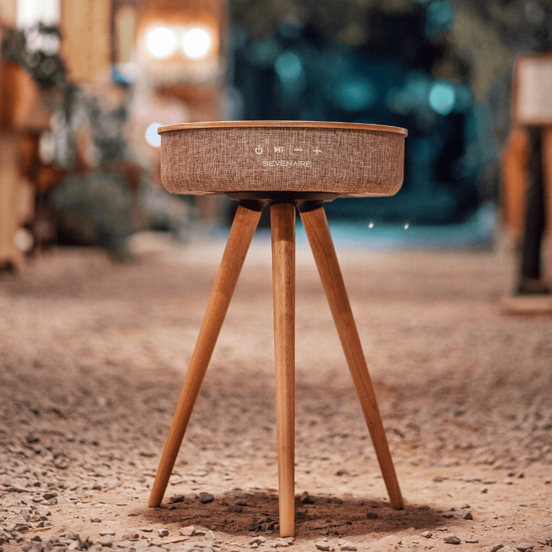 Saturn Speaker Table by Sevenaire is built as a fusion of art and audio innovations. The 360° design projects sound in a consistent and uniform manner for a full surround sound experience. The speaker is packed with specs to deliver captivating and extraordinary sound for the ultimate audio experience. All packed in an elegant oak wood table with premium heather fabric.